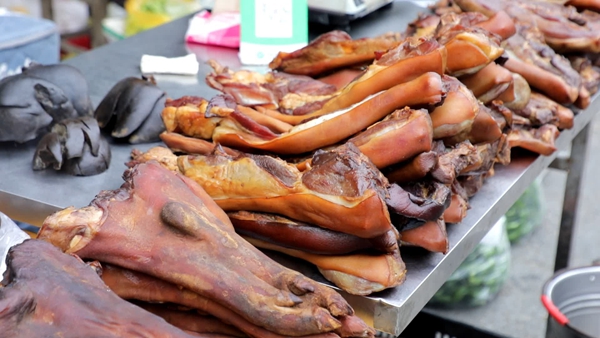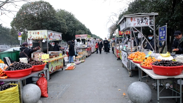 在烟火街,年货摊位上的商品琳琅满目。本地特色的官垱香干、安乡腊味、手工泡芽糖等年味美食飘香四溢,成为市民选购的热门,不少返乡游子特意前来挑选。摊主们忙得不亦乐乎,一边熟练地帮顾客打包商品,一边热情介绍。